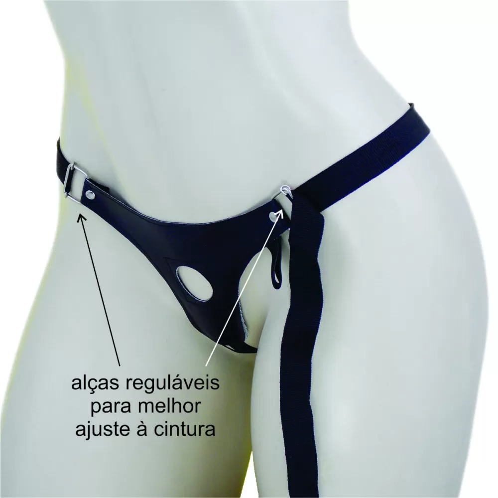 Cinta Sado com suporte para vibrador tipo Bullet. Cinta com furo (orifício com 3,5cm de diâmetro e reforçado na costura) especial para passagem e suporte de prótese/pênis. Esse orifício é o ideal para próteses de tamanho médio e comporta os pênis com medidas de 14 até 19cm. A prótese da imagem é apenas ilustrativa e não está inclusa.